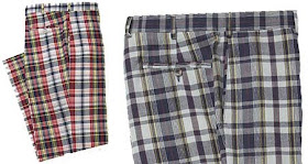 Madras trousers also look good worn casually with your favorite shirt, or more polished with a navy blazer.There are lots of great madras pieces for men this year. The lightweight fabric is ideal for hot weather. Mr. Peacock has a vintage pair of very soft madras patchwork pants that he’ll be lounging around in this summer.